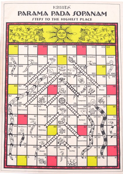 However, in its original form the game was so much more. Known by names such as Moksha Pattam, Vaikunta Pali and Parama Padam, the game essentially was meant to provide a road map for personal development leading an individual upwards towards Moksha or the Highest Place. The ladders were meant to represent virtues and the snakes were named by characters from mythology who represented vices.