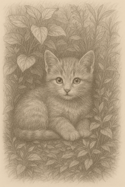 But then they heard another mew. And then another. And another. It seemed louder and closer this time. So, H picked up a torch and started searching for the kitten. And there, nestled between the plants was the tiniest kitten he had ever seen. It was pure white except for a coal black moustache reminding H of the famous detective Hercule Poirot from the books by Agatha Christie.